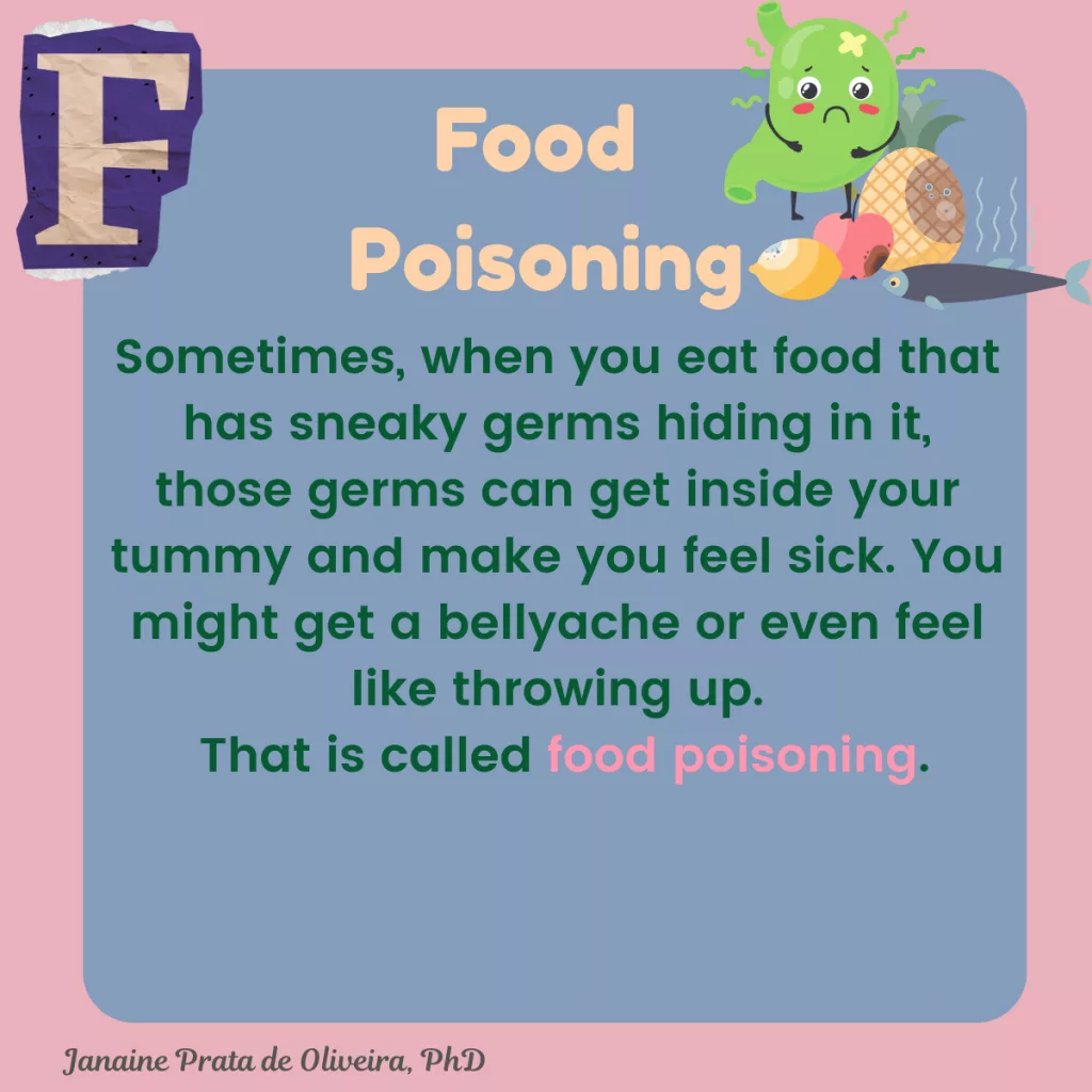 Sometimes, when you eat food that has sneaky germs hiding in it, those germs can get inside your tummy and make you feel sick. You might get a bellyache or even feel like throwing up.