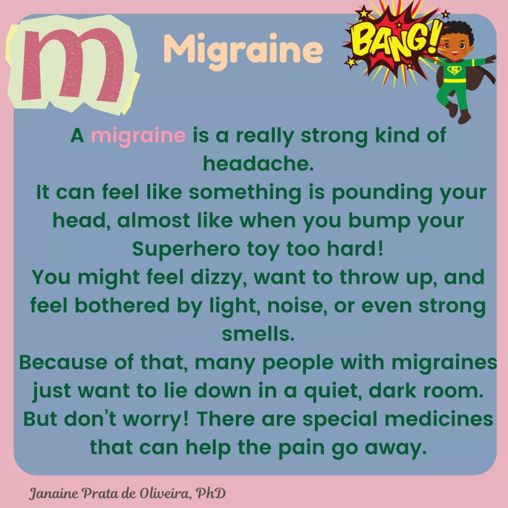 It can feel like something is pounding your head, almost like when you bump your Superhero toy too hard!