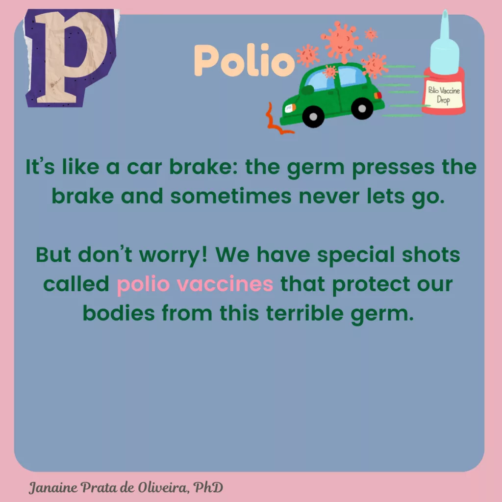 But don’t worry! We have special shots called polio vaccines that protect our bodies from this terrible germ.